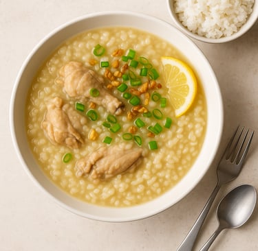 What makes Arroz Caldo truly special is its deep connection to Filipino home cooking and healing traditions. Often served to comfort the sick, soothe the tired, or warm the soul, this dish embodies care, calm, and nourishment. Every Filipino household has its version — some thicker, some more garlicky, some richer — each passed down with love and small touches that reflect family heritage.