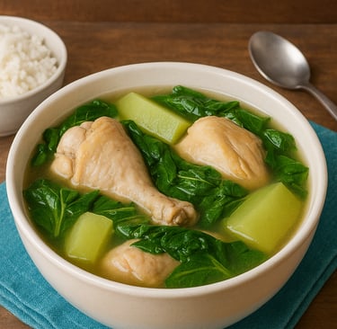 Tinolang Manok, a soul-warming Filipino chicken soup, is a comforting dish known for its clear ginger broth, tender chicken, and fresh vegetables. Light yet nourishing, this recipe has been a staple in Filipino households for generations — offering warmth during rainy days, healing comfort when someone’s feeling under the weather, and a simple joy shared at the dinner table. Every spoonful brings together gentle ginger heat, savory chicken, and the freshness of greens like malunggay or spinach, creating a dish that tastes like pure care.